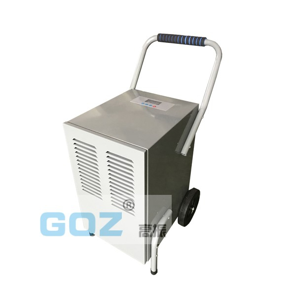 高振手推車除濕機(jī)通過風(fēng)機(jī)將潮濕空氣抽入機(jī)器內(nèi)部,通過壓縮機(jī)制冷將蒸發(fā)器降溫至露點(diǎn)以下,潮濕空氣經(jīng)過蒸發(fā)器在表面凝結(jié)成水,匯集至接水盤后,流入水箱中,干爽空氣經(jīng)冷凝器重新加熱由出風(fēng)口排出,這樣不斷循環(huán)將室內(nèi)濕度降低。